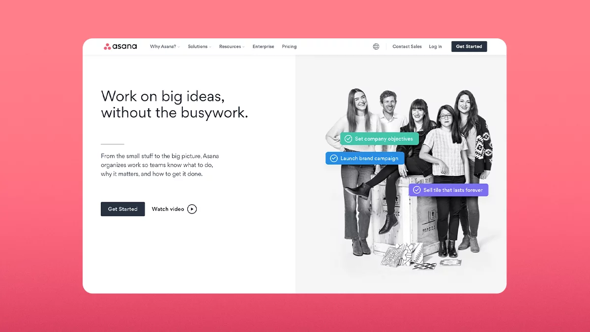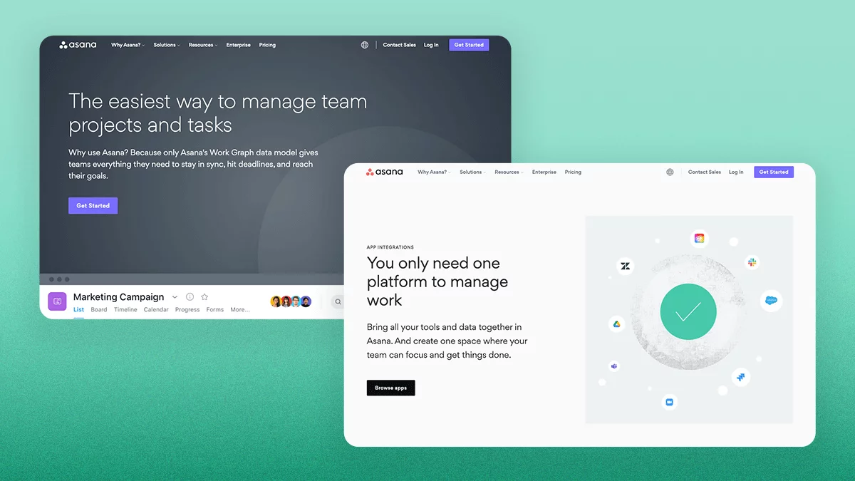 The chosen typeface feels very on-brand for Asana and fits their personality. The round, geometric, letterforms feel modern, approachable, and intentional. And visuals balance the type well.