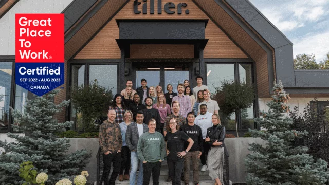 I am proud to announce that Tiller has been certified as a Great Place to Work® after a thorough, independent analysis by Great Place to Work Institute® Canada. This certification is based on direct feedback from our employees, as part of an extensive and anonymous survey about their experience working at Tiller.